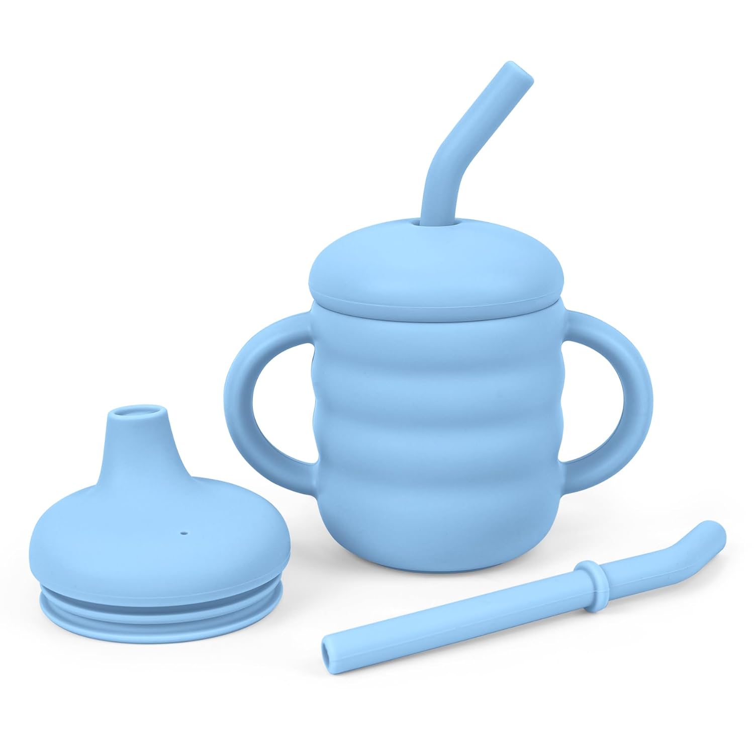 Vaanshie Silicone Baby Sippy Cups | Straw Cup Baby | Toddler Cup with Straw | 3 Stages Training Cup for Infants Toddlers and Kid, 5.4 oz (Blue)