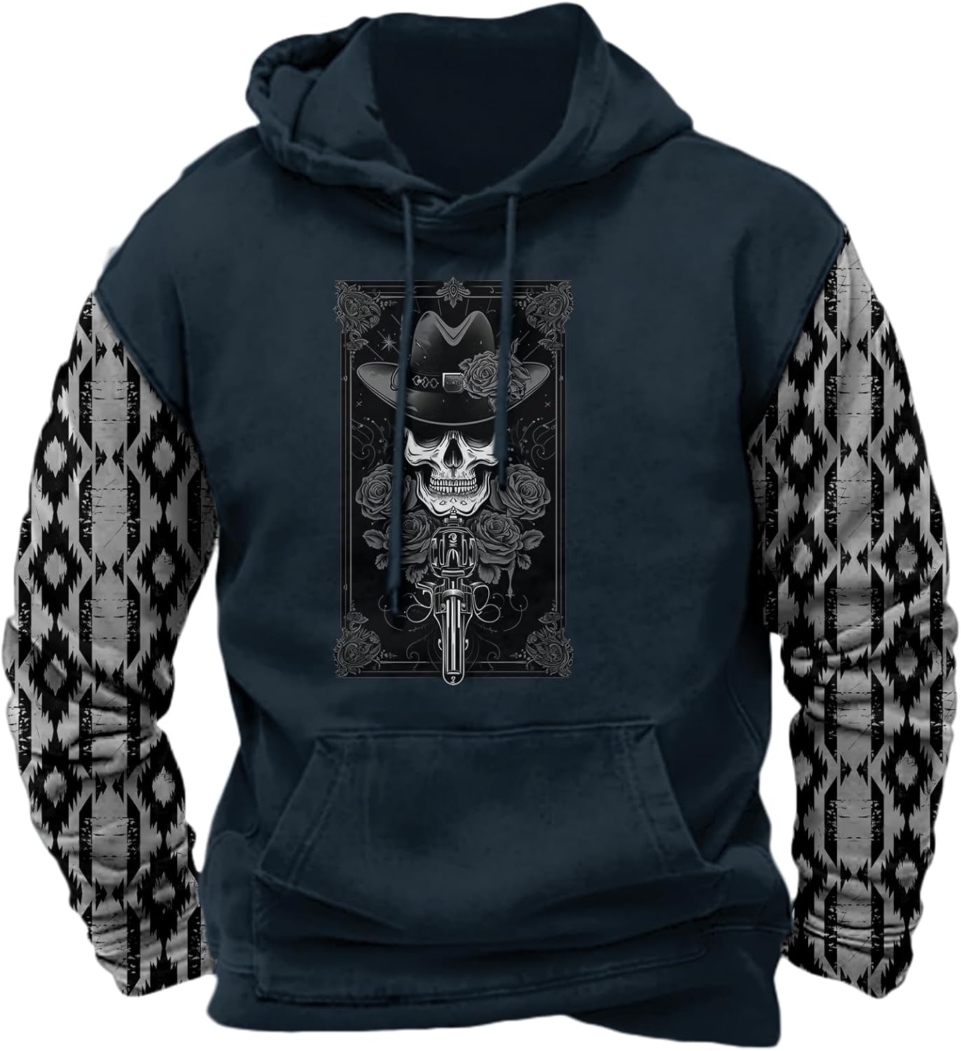 MARSVOVO Western Hoodies Men Aztec Tribal Hippie Graphic Fall Pullover Oversized Baggy Cowboy Jogger Aztec Sweatshirts