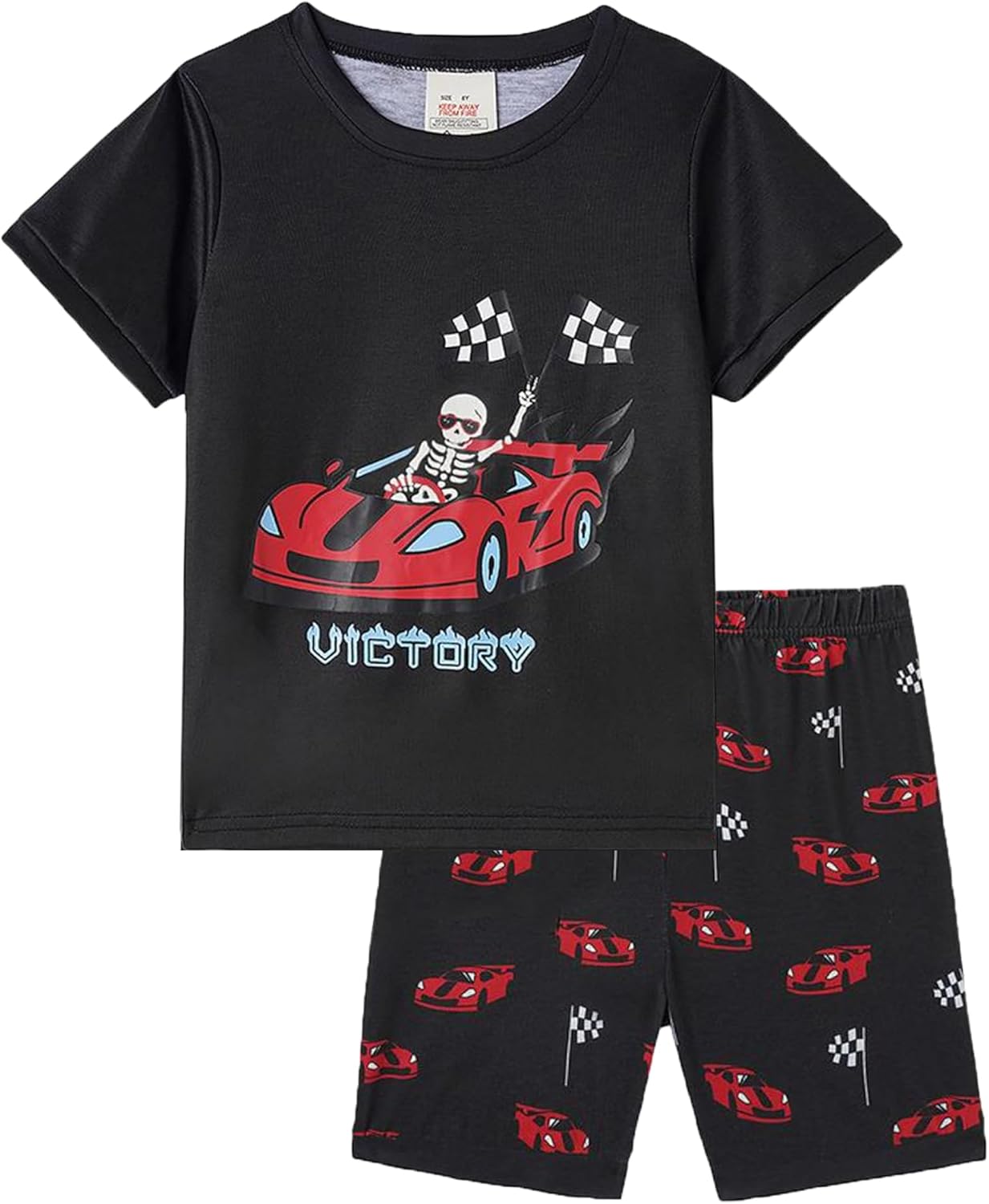 Beezizac Little Big Boys 2-Piece Cozy Pajamas Short Sleeve Cool Summer PJ Set Kid Sleepwear Size 6-18