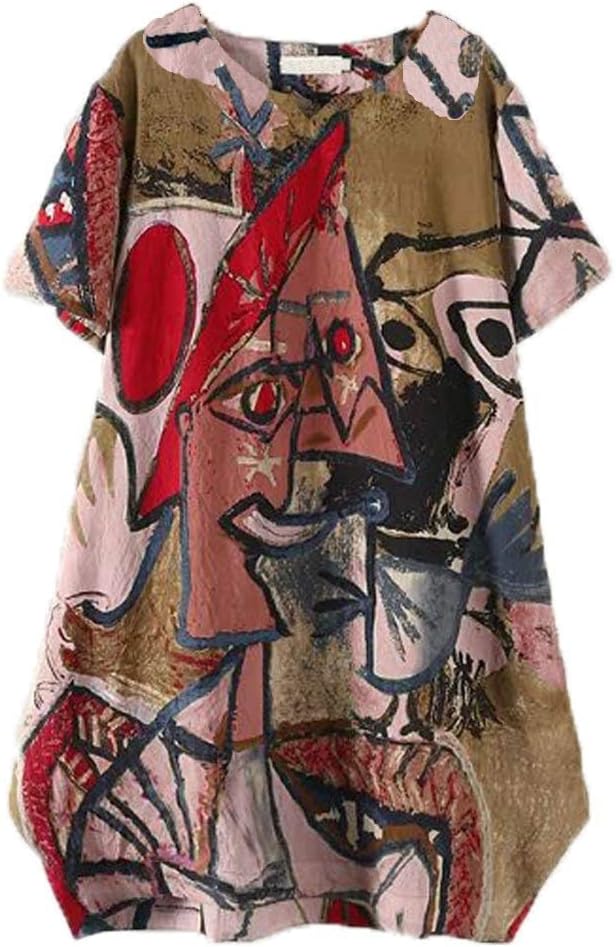 FTCayanz Women's Casual Midi Dresses Short Sleeve Loose Print T Shirt Dress with Pockets