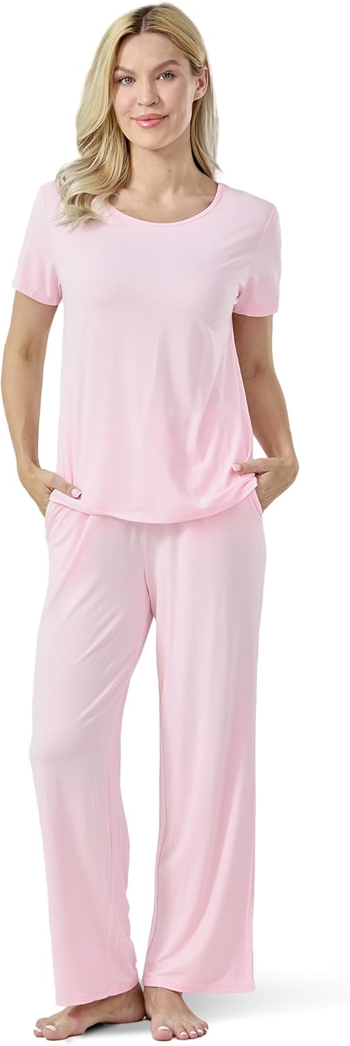 GYS Bamboo-derived Viscose Women's Pajamas Set Short Sleeve Top With Pants 2-Piece Sleep Set