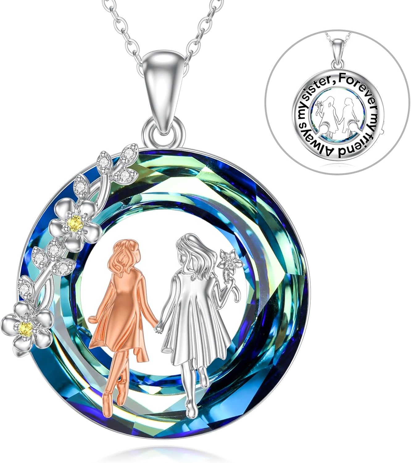 MONGAS Sister Necklace 925 Sterling Silver Necklace for Sister Best Friend Necklace Sister Jewelry for Women