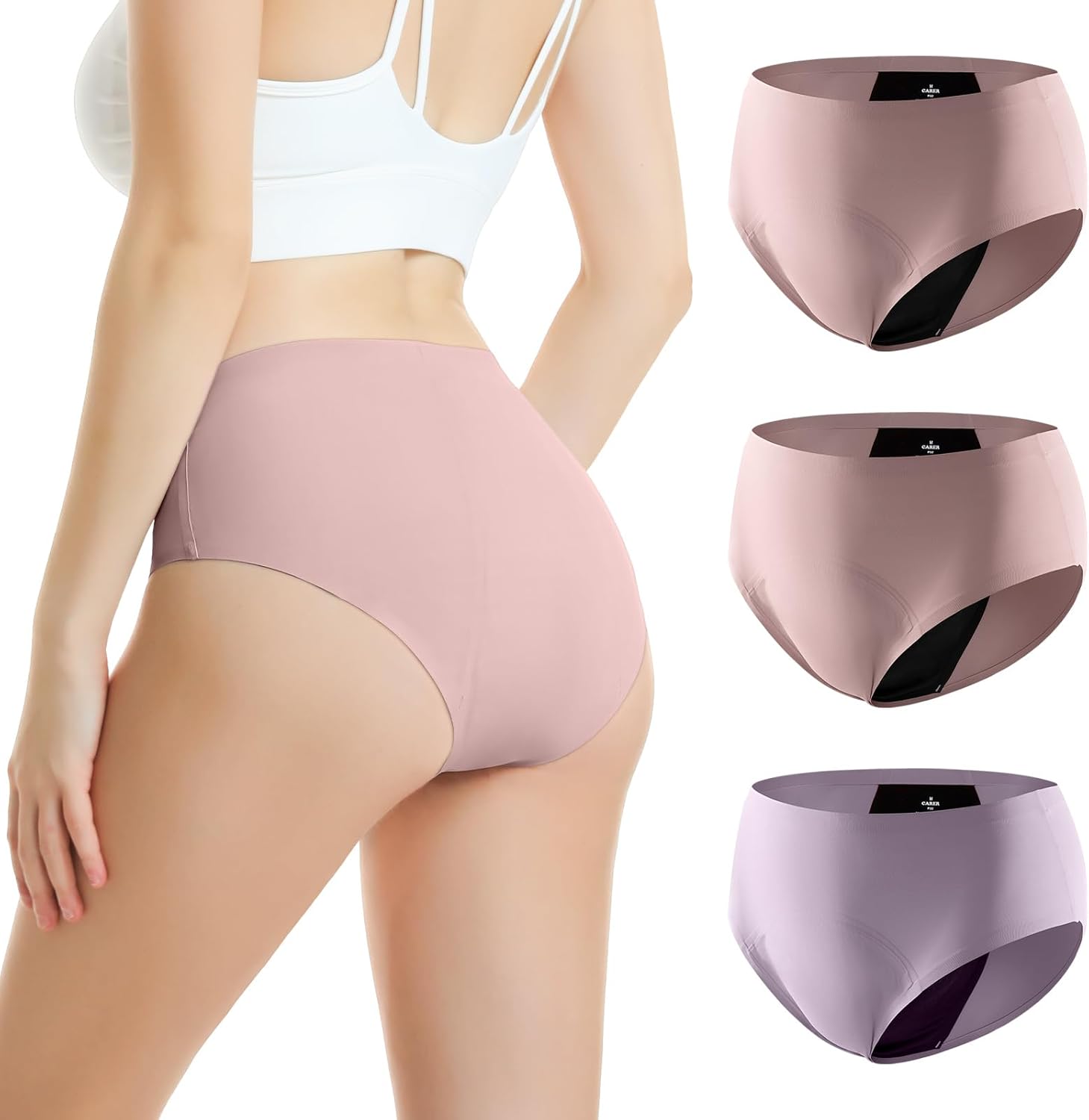 Carer High Absorbency Period Underwear for Women Heavy Flow Seamless Womens Leak Proof Period Panties Menstrual Briefs for Women Light Incontinence Underwear 3pk M (2 Pink/1 Purple)