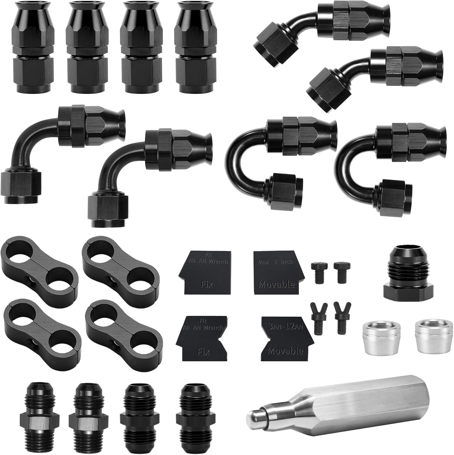 - Full Customization in One Kit : This 23-piece kit includes 10x 6AN PTFE fittings (0°/45°/90°/180°), 4x male fittings, 4x hose separator clamps and exclusive wrench protectors & Hose Reaming Tool. Mechanics-approved: 92% of jobs completed with just 1 box. No more last-minute car tuning shop runs.