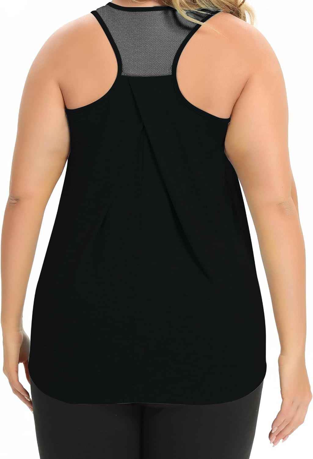 FOREYOND Women's Plus Size Workout Tank Tops Loose Fit Yoga Racerback Athletic Tops Sleeveless Summer Shirts