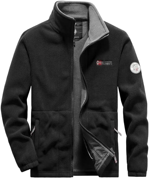 Men's Double-Layer Fleece Hooded Jacket, Heavy Thick Winter Shaker Fleece Double-Sided Fleece Jacket