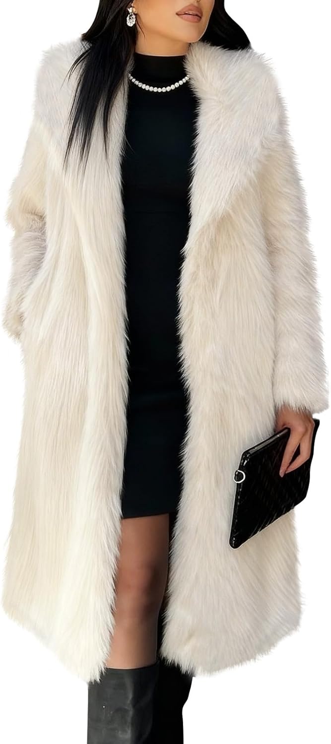 COZYPOIN Womens Long Faux Fur Coat Long Sleeve Lapel Furry Fur Jackets Winter Warm Fluffy Outerwear Shaggy Overcoat