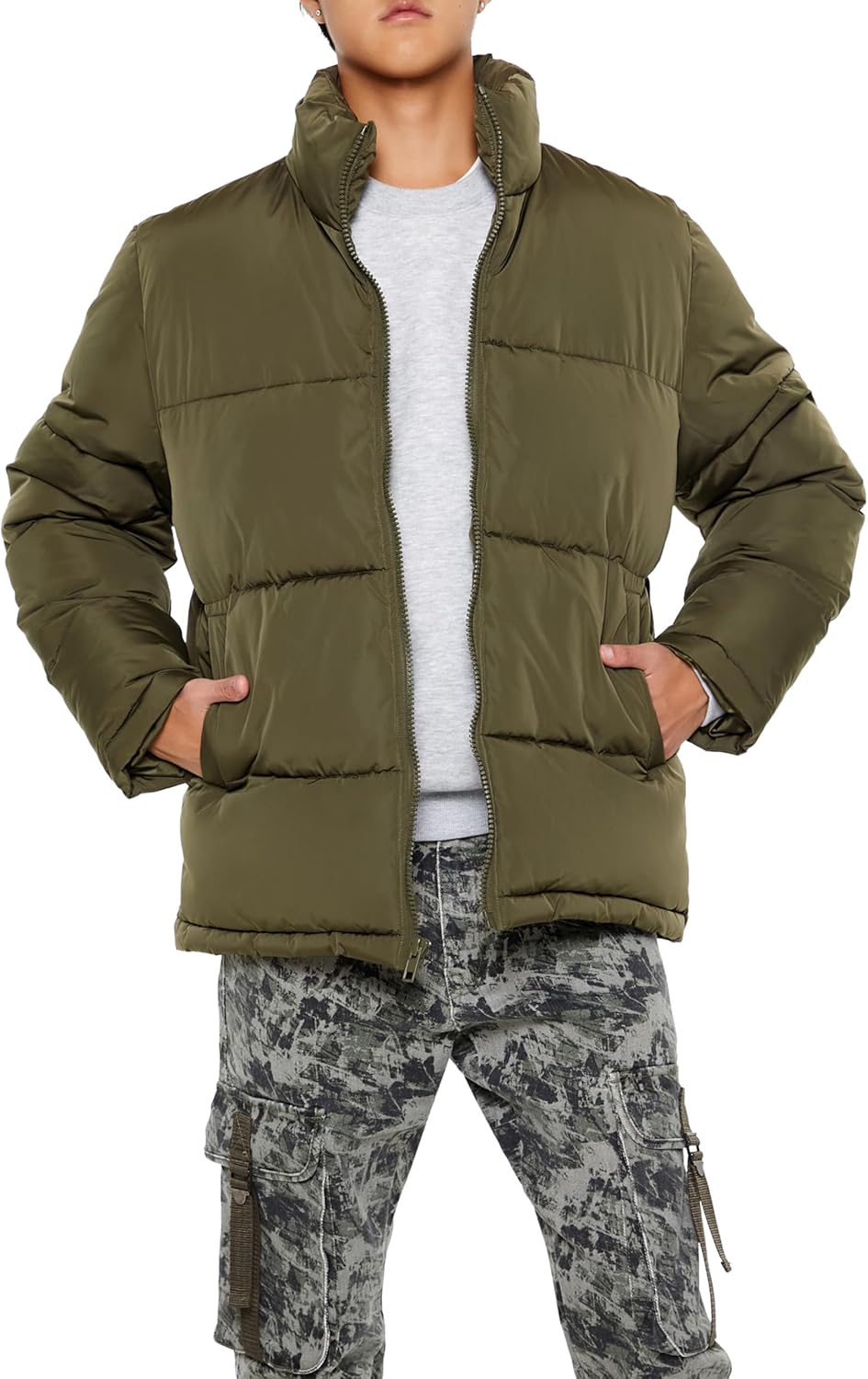 Forever 21 mens Quilted Funnel-neck Puffer Jacket