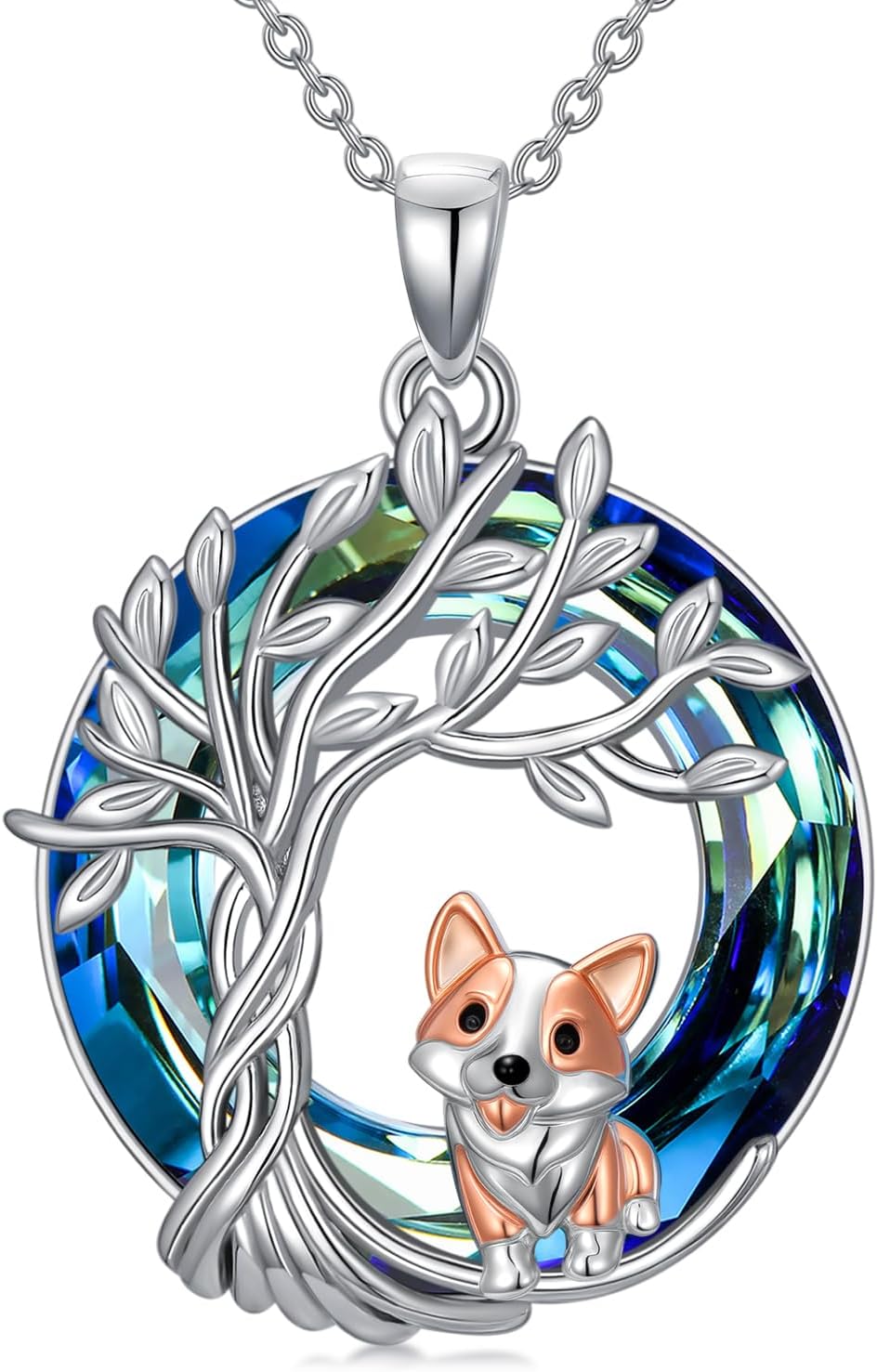 TOUPOP Tree of Life Dog Necklace 925 Sterling Silver Crystal Pet Jewelry Dog Lovers Gifts for Women