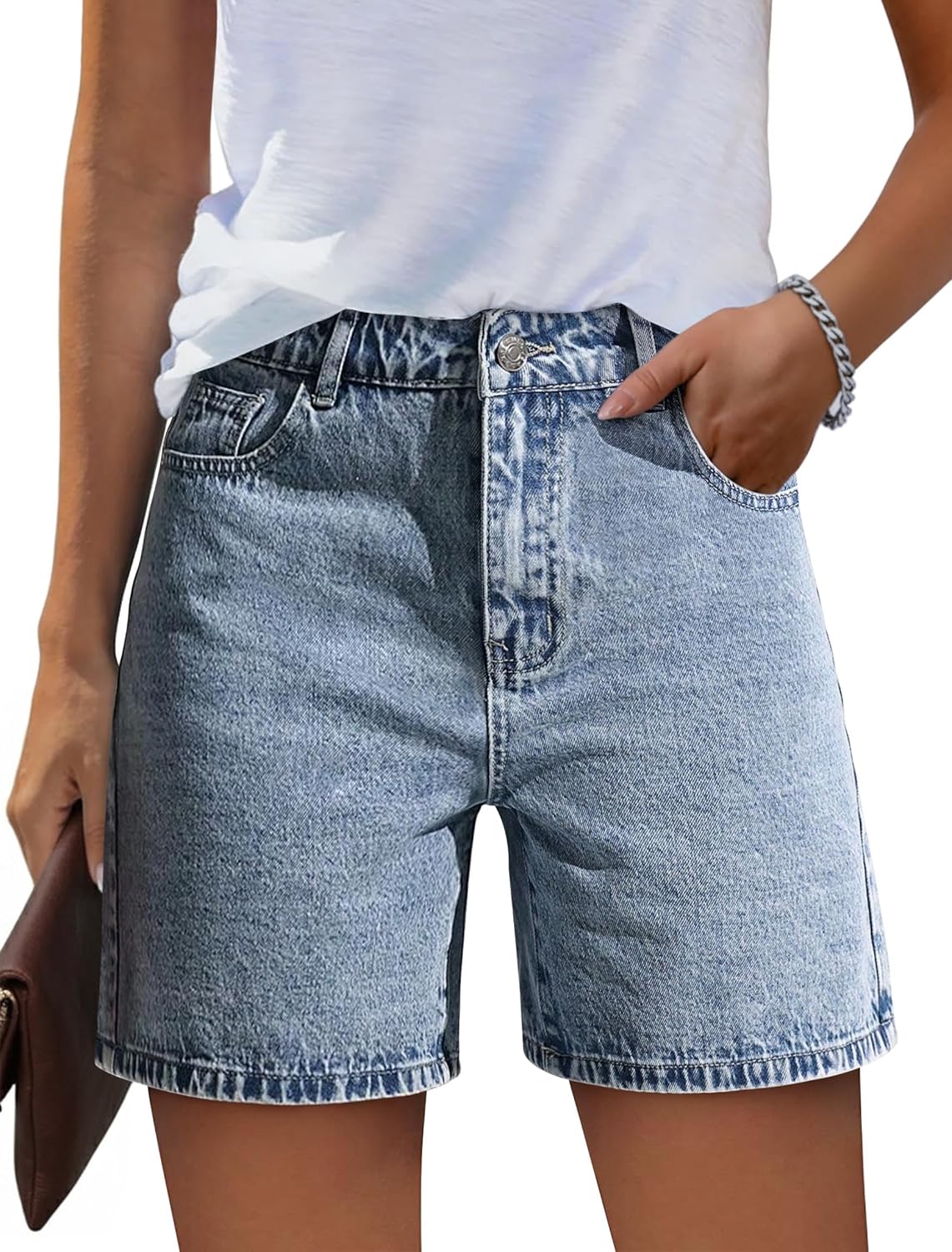 Eddoyee Women Bermuda Denim Shorts - High Waisted Baggy Denim Jorts Loose Fit Wide Leg Jean Shorts with Pockets