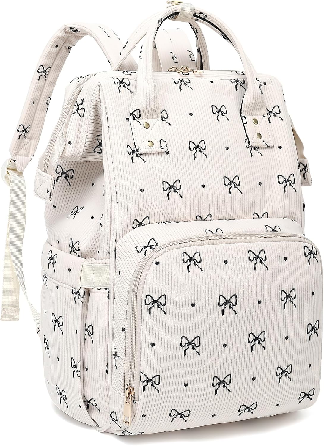 Laptop Backpack for Women, Corduroy College School Backpack Bookbag 15.6 inch Business Computer Travel Backpack (Bow Tie)
