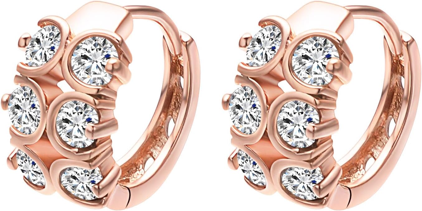 14K Rose Gold Cubic Zirconia Hoop Earrings for Women, Statement Geometric Hoop Earrings Hypoallergenic Trendy Jewellery