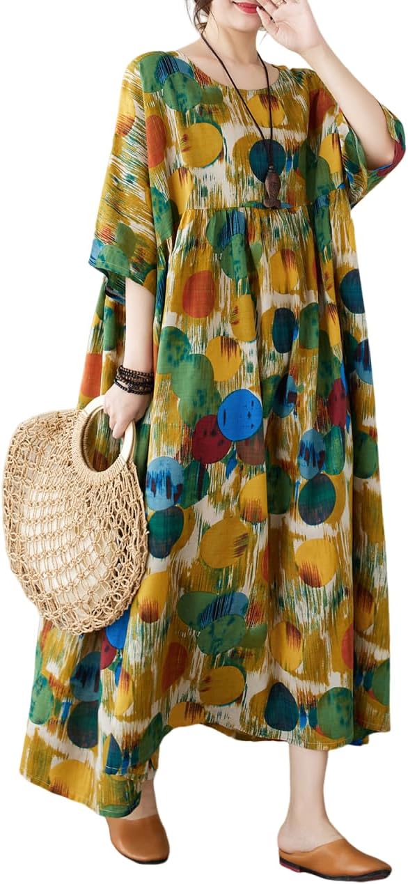 Women's Plus Size Dresses Colorful Polka Dots Print Round Neck Summer Casual Dress Oversized