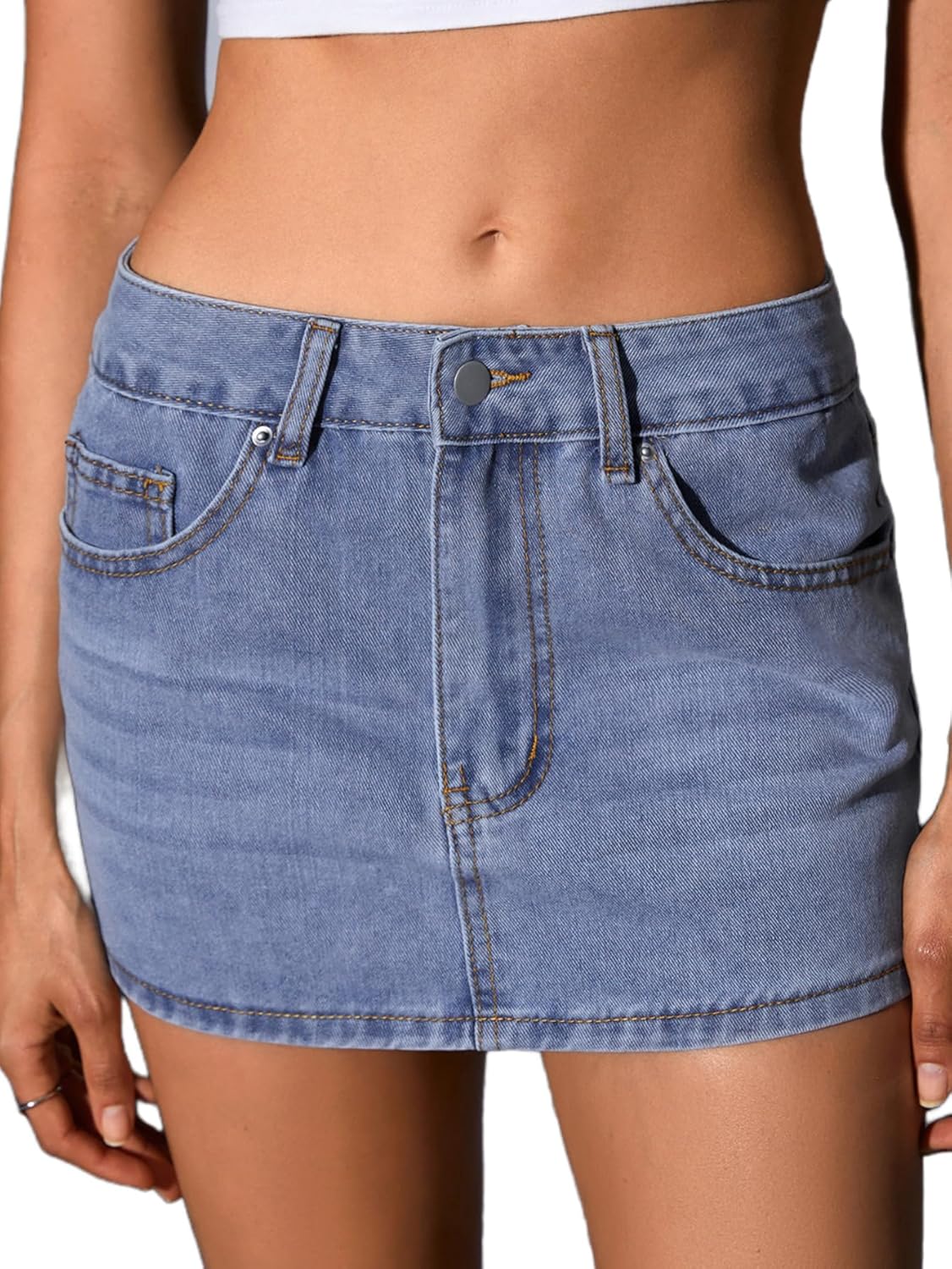 MakeMeChic Women's Casual High Waist Bodycon Jean Skirt Button Zipper Fly Mini Denim Skirt