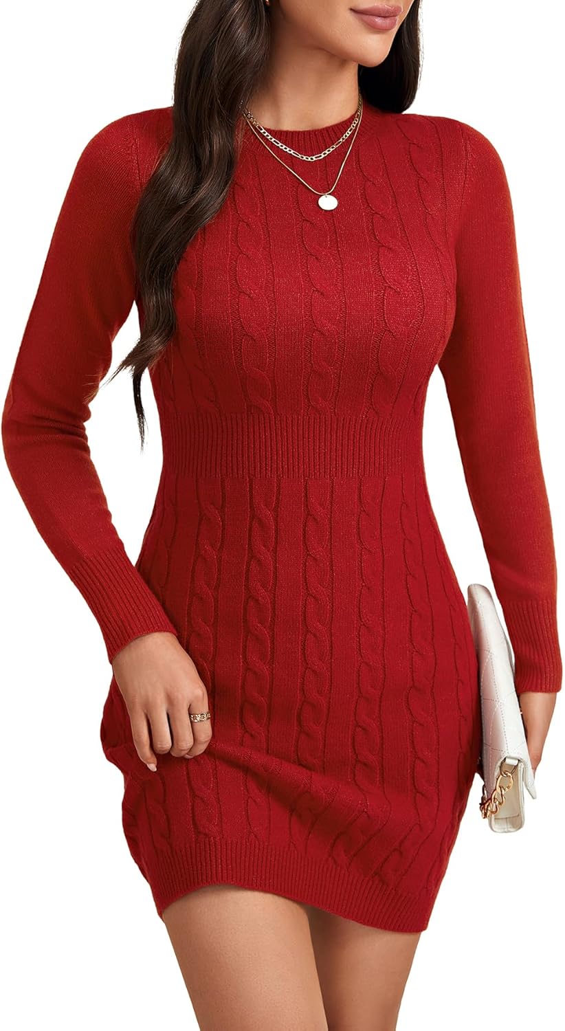 LYANER Women's Cable Knit Crewneck Long Sleeve Bodycon Pullover Cocktail Mini Sweater Dress