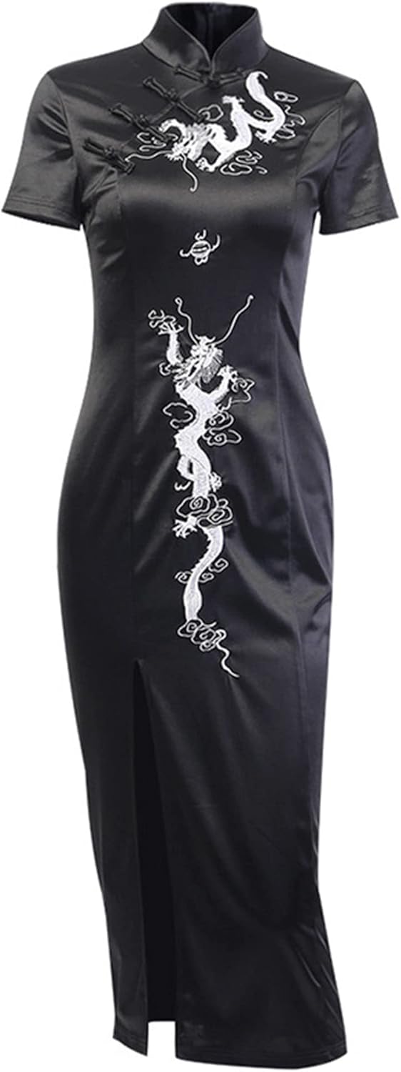 TSMNZMU Cheongsam Dress for Women - Gothic Asian Long Maxi Dress with Dragon Print