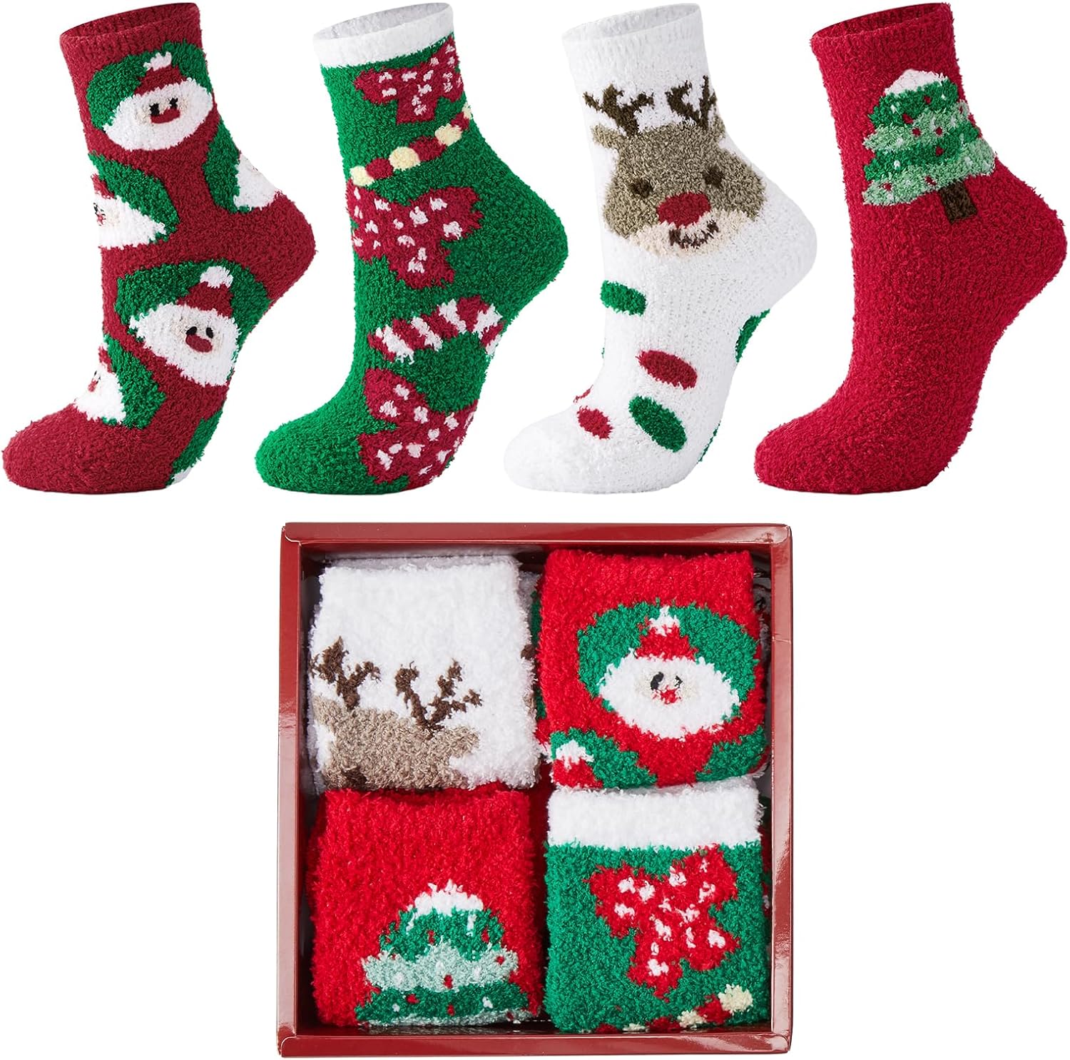 J-BOX Womens Christmas Socks Winter Soft Warm Fuzzy Socks Cozy Fluffy Slipper Socks for Women Mens Gifts(2/4 pairs)