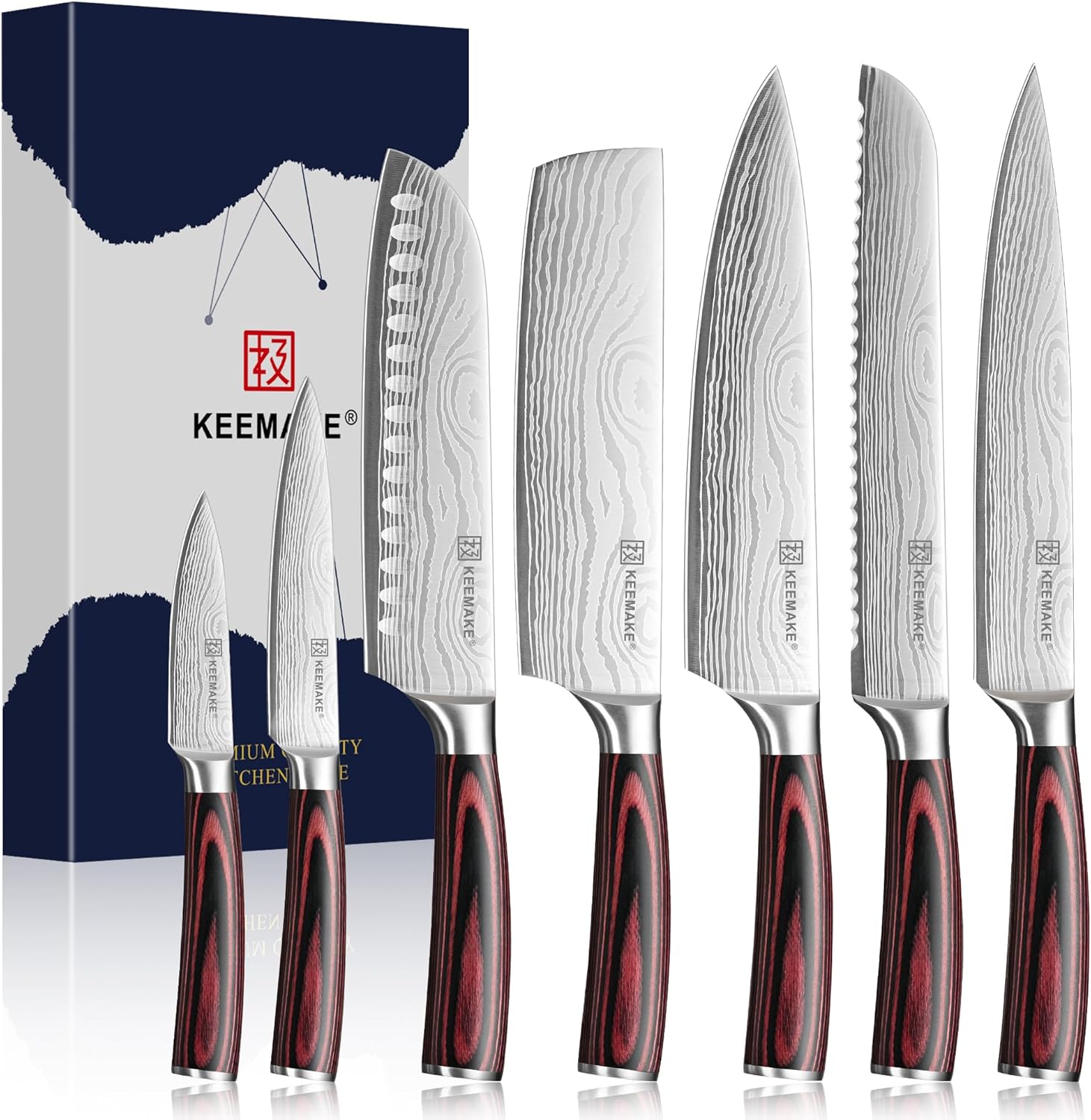KEEMAKE Kitchen Knife Set, Ultra Sharp Chef Knife Set 7-Piece, High Carbon Stainless Steel Chefs Knife Set, Professional Knives Set for Kitchen with Pakkawood Handle and Gift Box