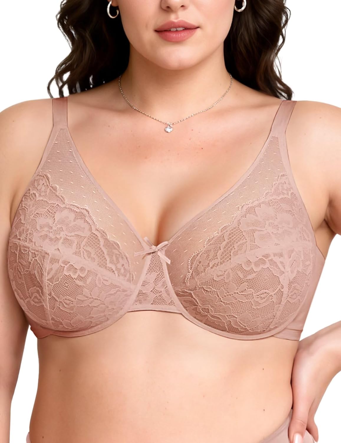 Vertvie Minimizer Bras for Women Full Coverage Underwire Supportive Bra Plus Size Lift Unlined Lace Bralette for Large Bust
