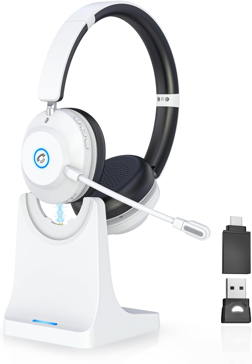 - 【Ergonomic Design for All-Day Comfort】This wireless headset with mic for work features a lightweight build and soft ear cushions that fit snugly without pressure. The adjustable headband suits most head shapes—no discomfort even during long workdays. Gift it to colleagues who work online for hours or use it to tackle busy schedules. Its comfortable fit lets you forget fatigue, fully engaging in work and life with ease.