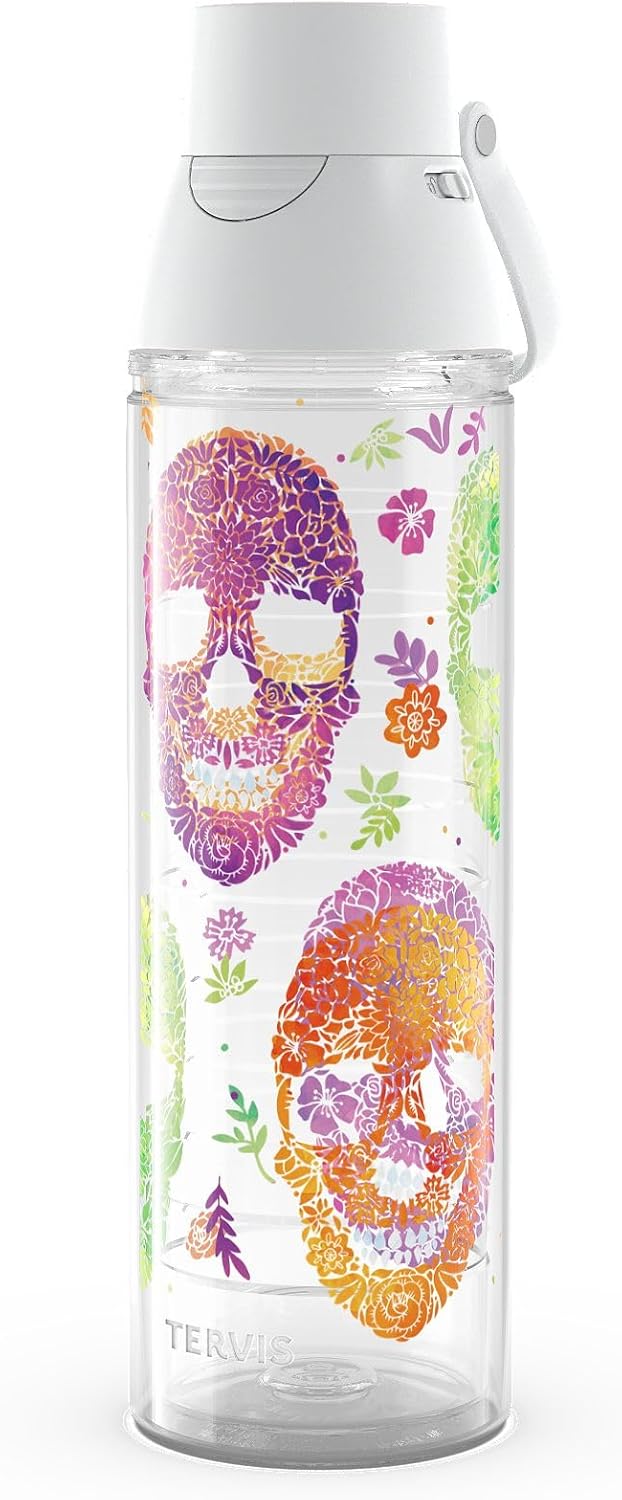 Tervis Venture Lite Floral Skulls Day of the Dead Halloween Made in USA Double Walled Insulated Tumbler Travel Cup Keeps Drinks Cold & Hot, 24oz Water Bottle, Classic