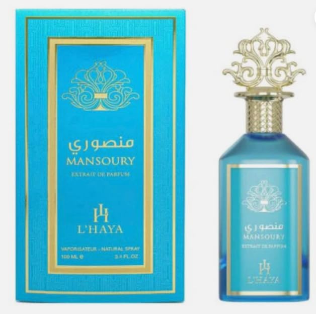 L'haya Mansoury Extrait de Parfum, Luxury Fragrance, 3.4 FL OZ, Natural Spray, Turquoise and Gold