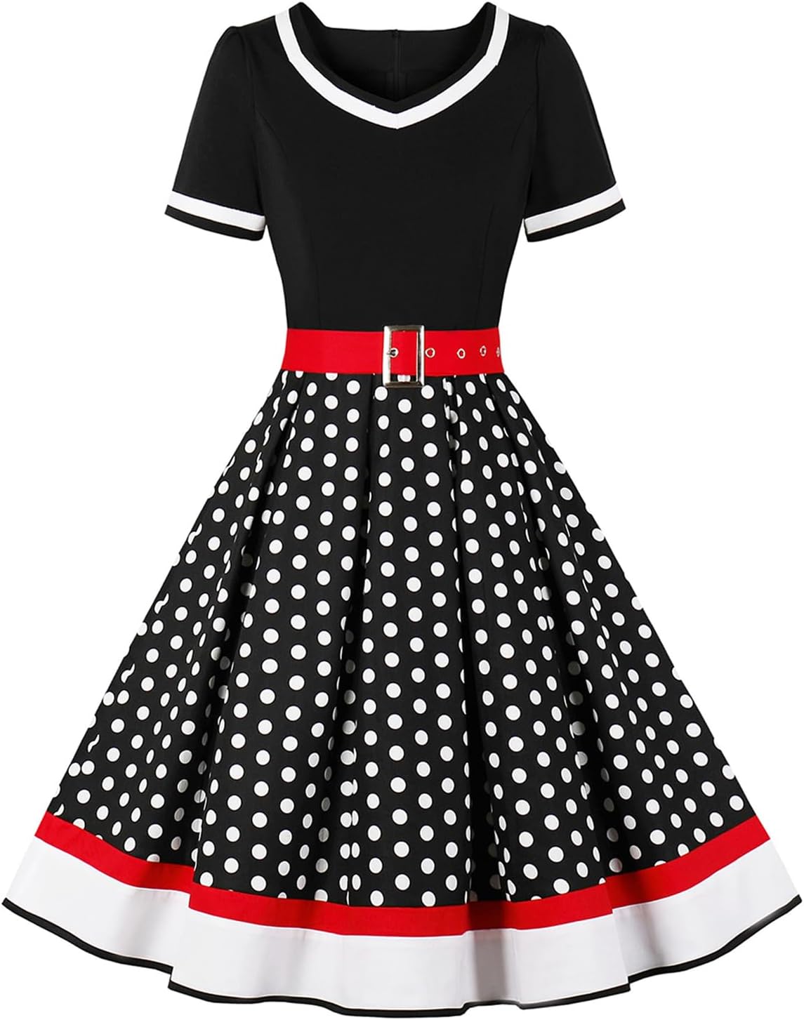 Women 1950s Vintage Short Sleeve Peter Pan Collar Retro Swing A Line Midi Summer Dress Cocktail Party Evening Prom Gown