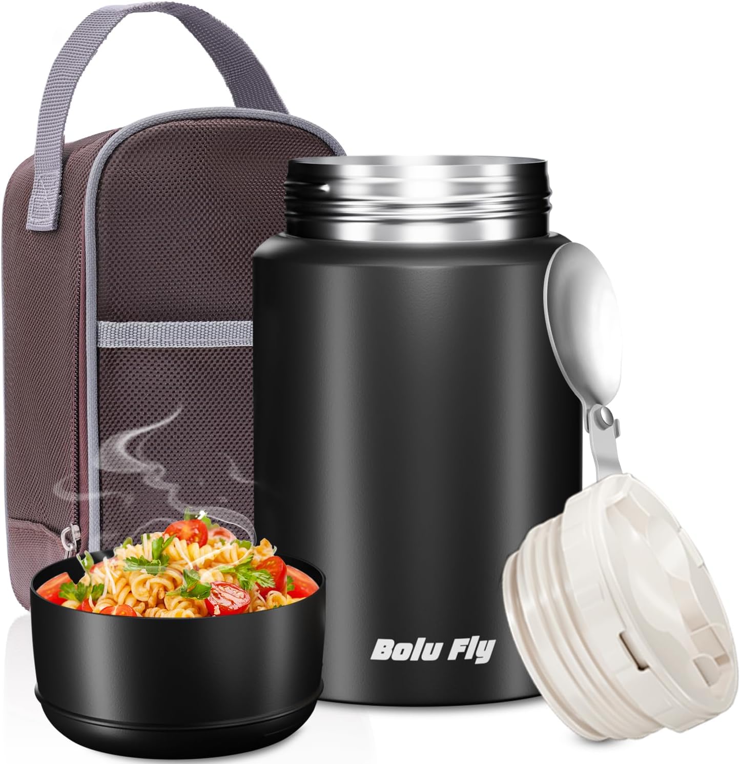 - Collapsible Spoon and Insulated Bag, Easier to Use and Carry Insulated Food Jar Set Includes a Collapsible Stainless Steel Spoon (Fits Inside The Container) and an Insulated Tote Bag. Can Be Enjoyed Anytime and Anywhere.