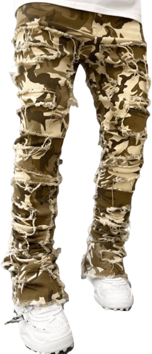 Jeans for Men Stretch Fit Skinny Stacked Ripped Destroyed Jeans Slim Fit Patch Y2K Denim Pants Slim Fit Trousers Streetwear Camo