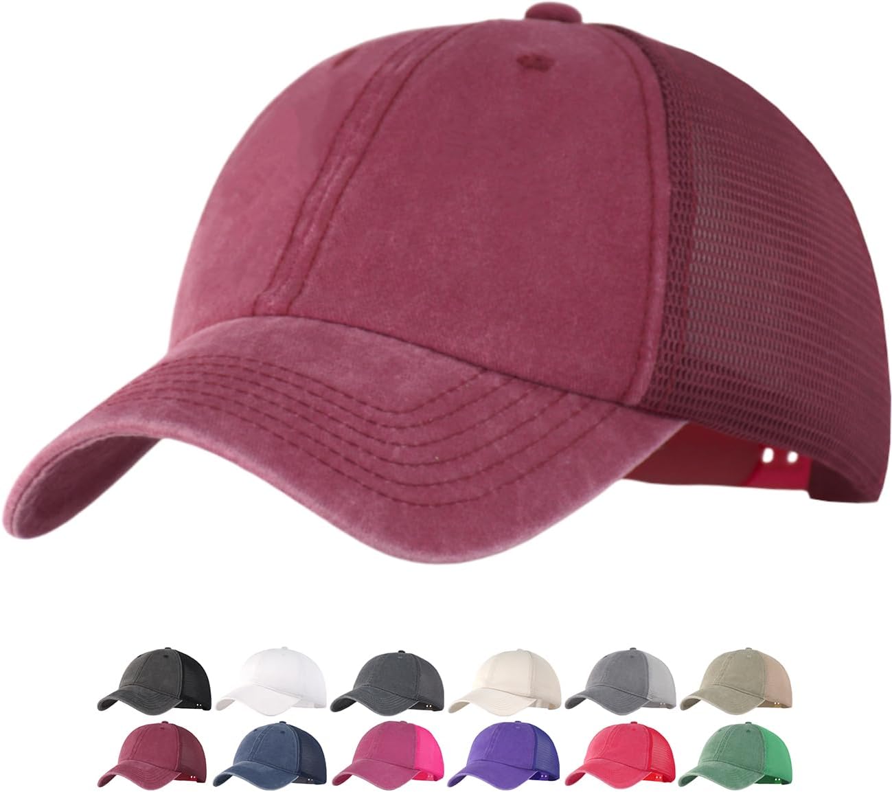 Vintage Washed Soft Crown Baseball Cap Plain Snapback Trucker Hat Men Women Adjustable Distressed Mesh-Back Ball Cap