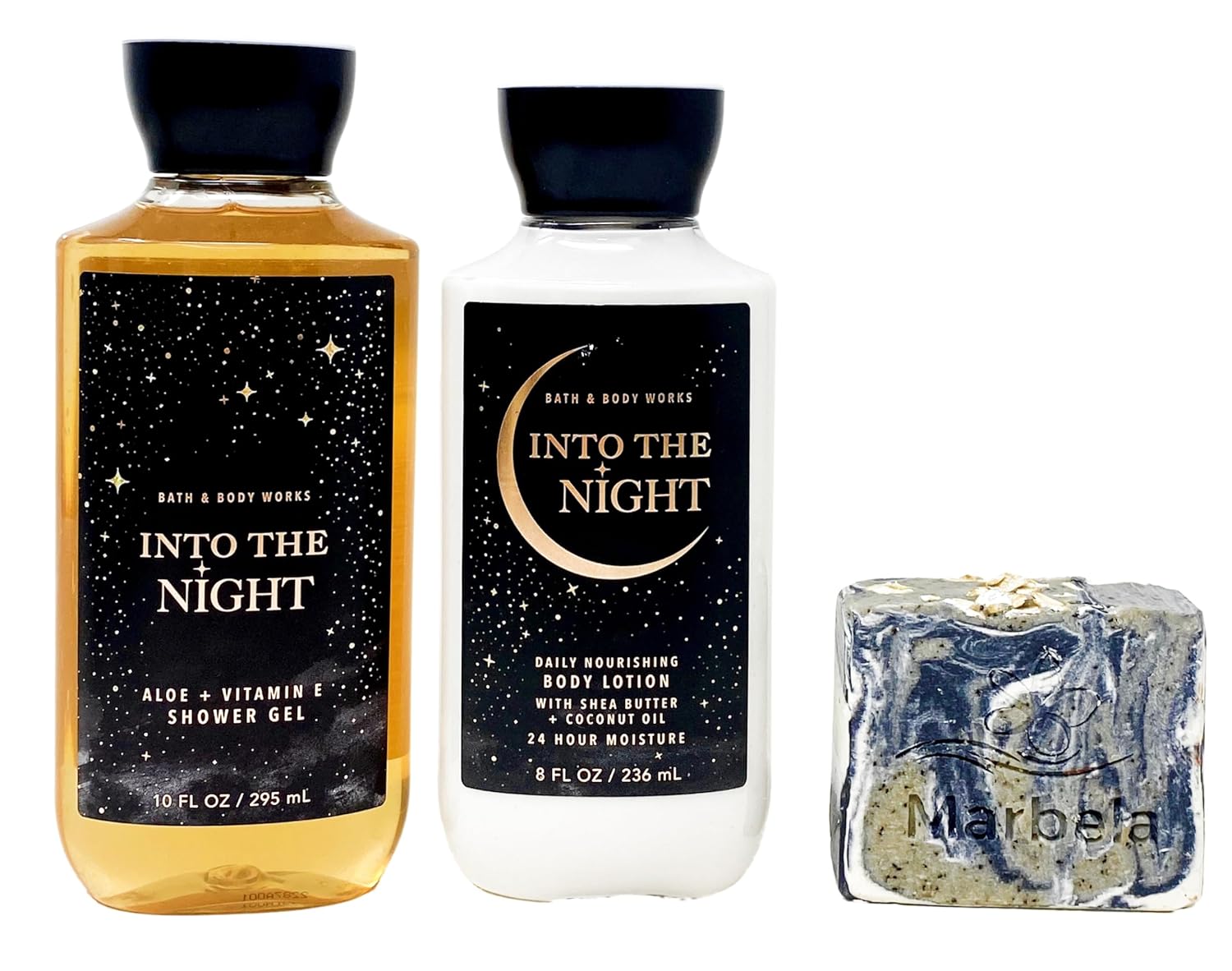 Bath & Body Works Into The Night - Duo Gift Set - Shower Gel and Body Lotion with a Charcoal Scrub Soap.