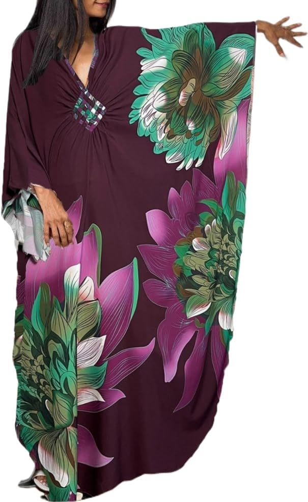 LOUSEA Kaftan Dress for Women Large Flower Print Cover Up Dresses Vneck One-piece Bathingsuit Cover Ups