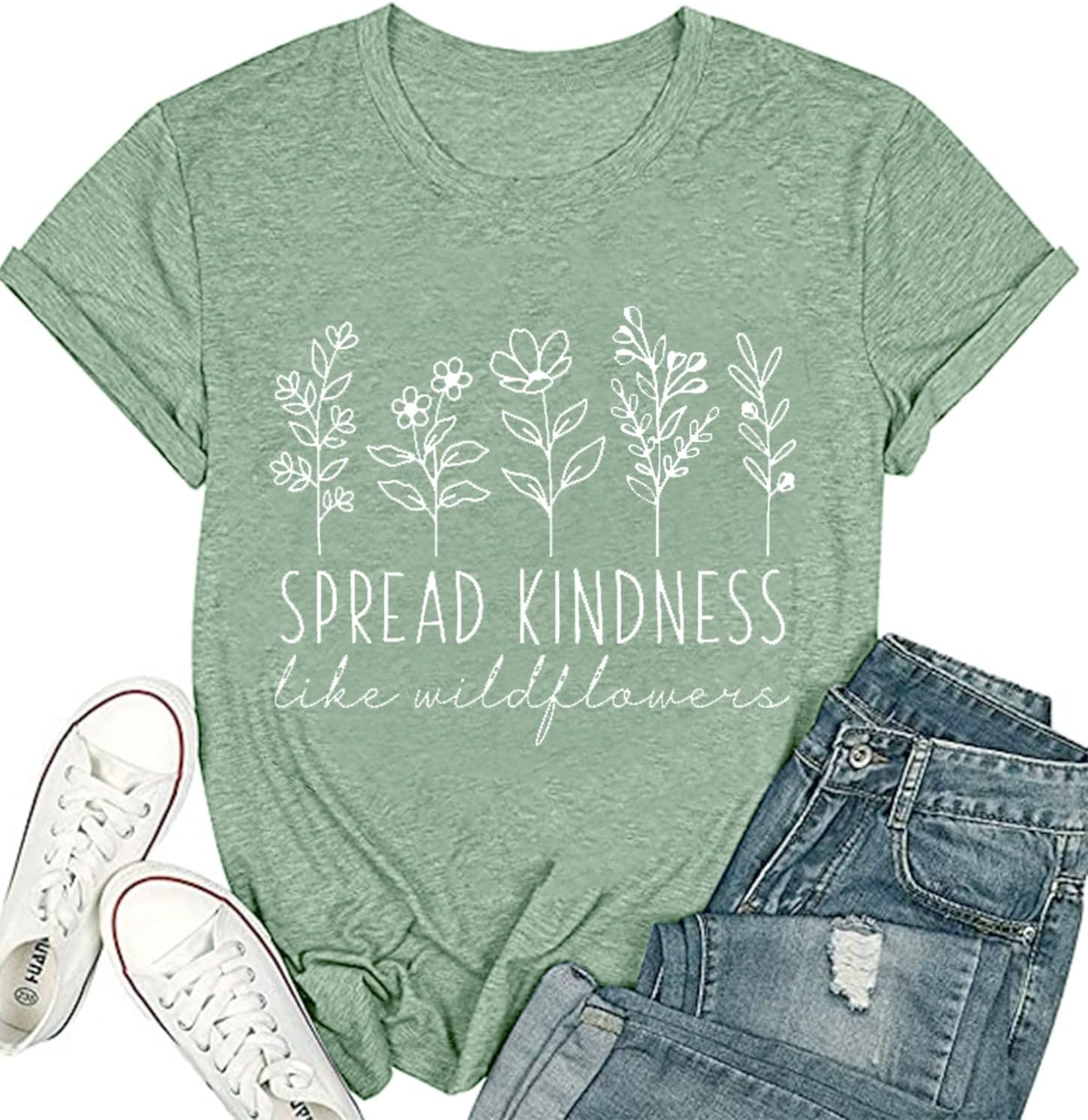 Women's Spread Kindness Like Wildeflowers Shirts Casual Short Sleeve Crewneck Summer Shirts Be Kind Graphic Tee Shirt