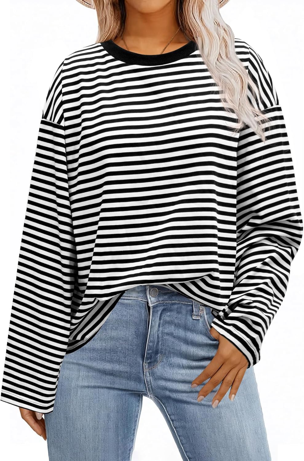 Womens Oversized Striped Long Sleeve Shirt Crewneck Sweatshirt Color Block Loose Pullover Top Teen Girl Y2K Clothes
