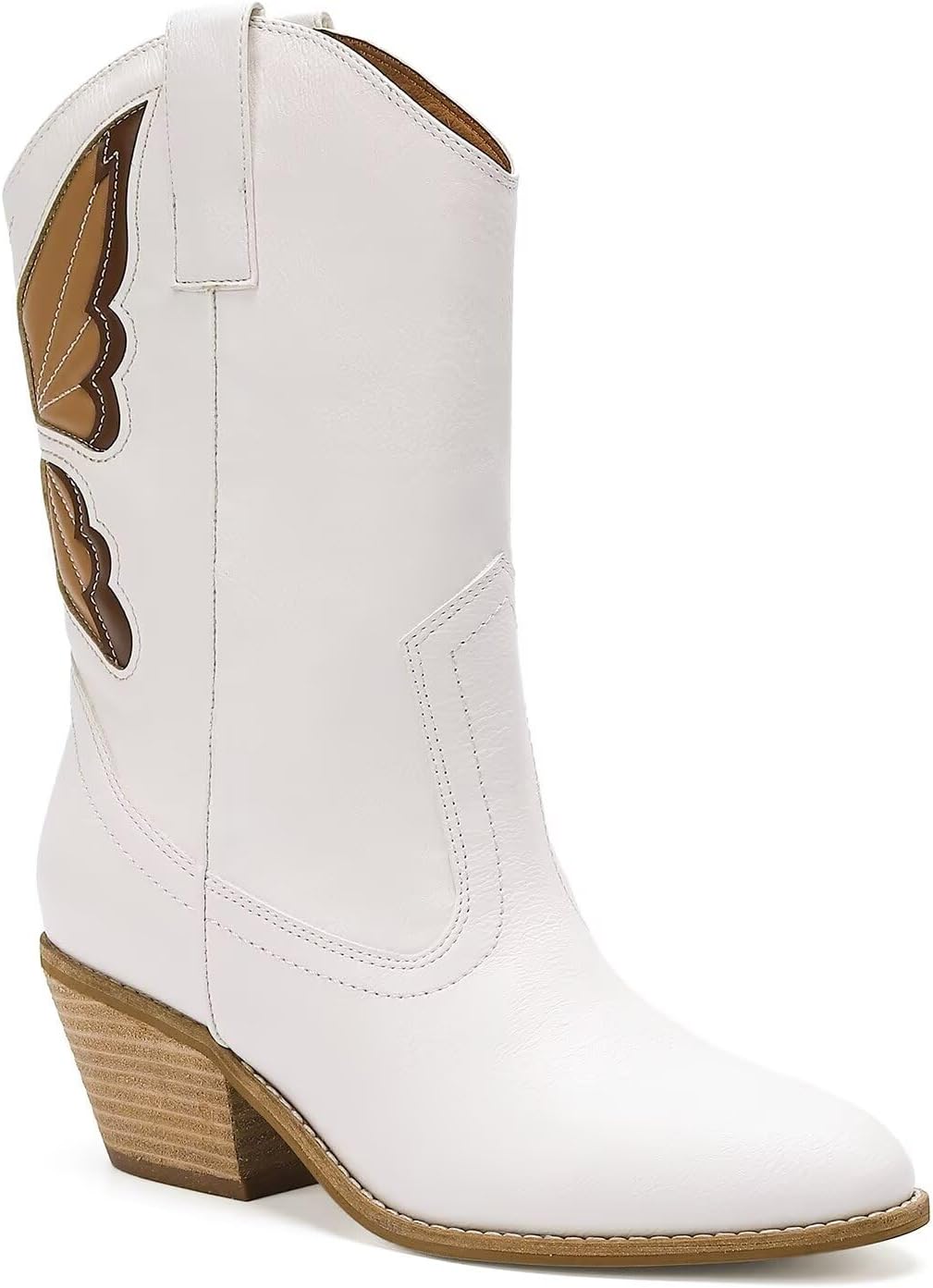 Women's Butterfly Western Booties Cowboy Boots Stacked Block Heel Boots Cowgirl Boots Pointed Toe Boots