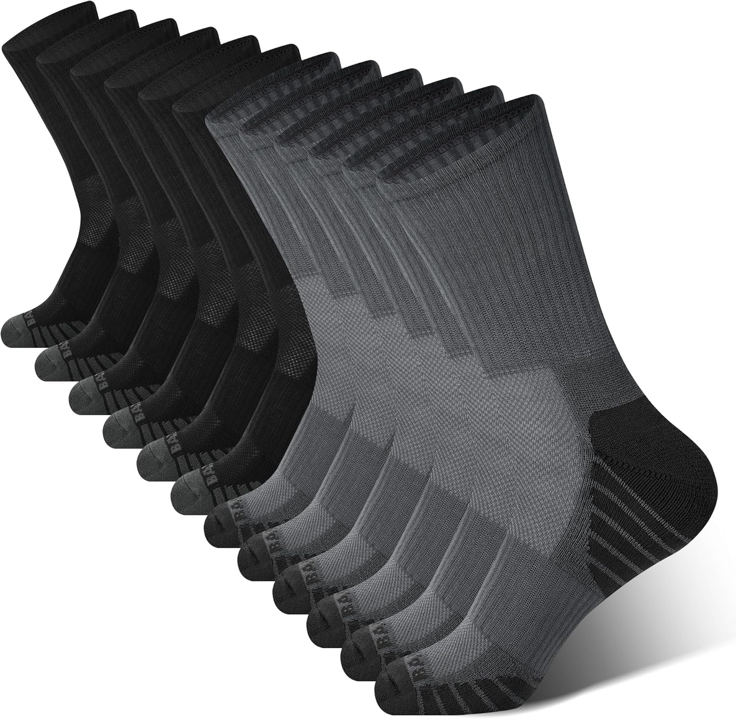 BAMBOO COOL Men's Crew Socks Athletic Running Sports Socks, Cushioned Moisture Wicking, Breathable Arch Support 6 Pack
