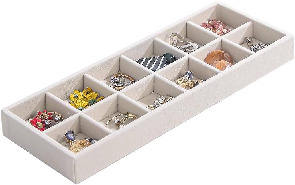- This organize tray wrapped elegant soft beige velvet, comfortable to touch and keep your jewelry and other your small belongings in good storage condition from dust and scratch.