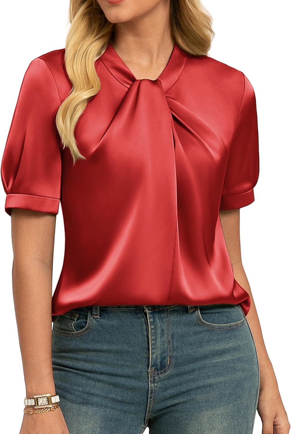 GRACE KARIN 2026 Women Satin Tops Short Sleeve Blouse Mock Neck Work Silk Shirts Business Casual Outfits