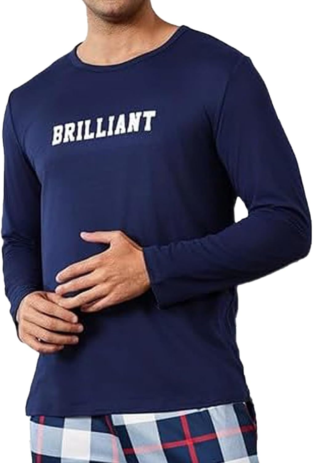 Men's Long Sleeve Pajama Top, Soft Navy Blue Sleep Shirt for Men, Comfortable Nightwear for Lounging & Sleeping