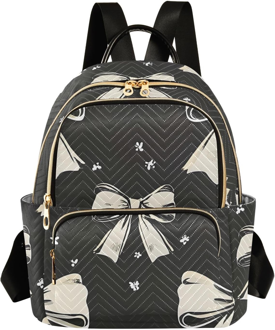 Women Mini Backpack Purse Bag Lightweight Casual Daily Travel Backpack Black - White Bow Pattern Back Pack Fashion Multipurpose Shoulder Bag,S