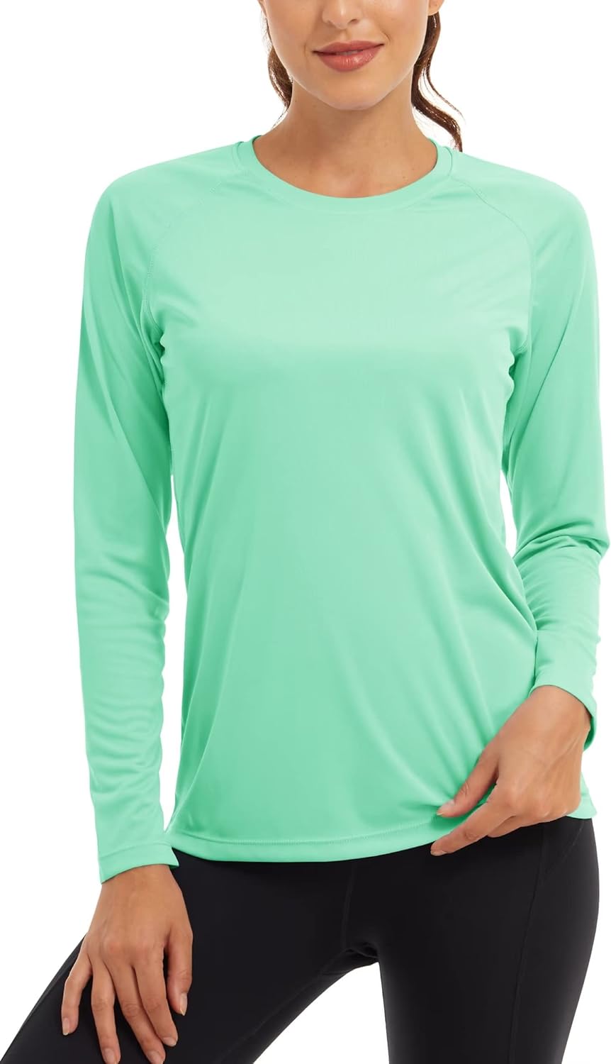 KEFITEVD Women's UPF 50+ Sun Protection Rash Guard Long Sleeve Crew Neck Quick Dry Workout Shirts for Running Yoga Swimming