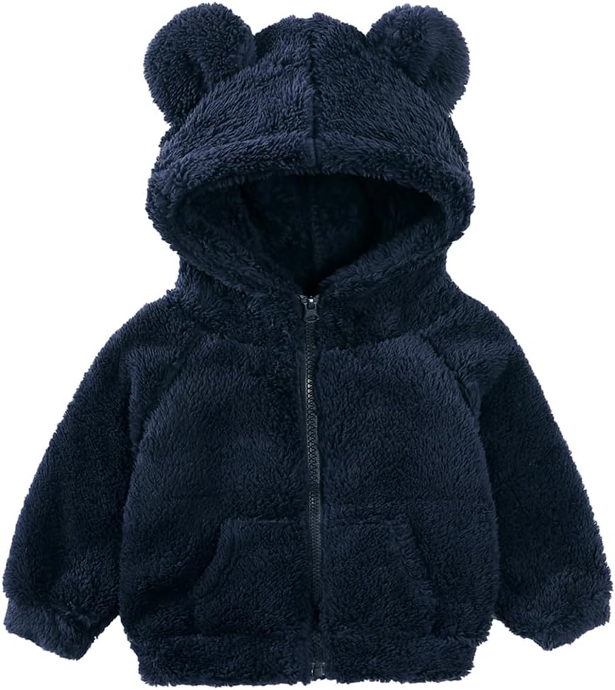 Newborn Infant Baby Boys Girls Cartoon Fleece Hooded Jacket Coat with Ears Warm Todder Kids Outwear Coat Zipper Up 0-6Y