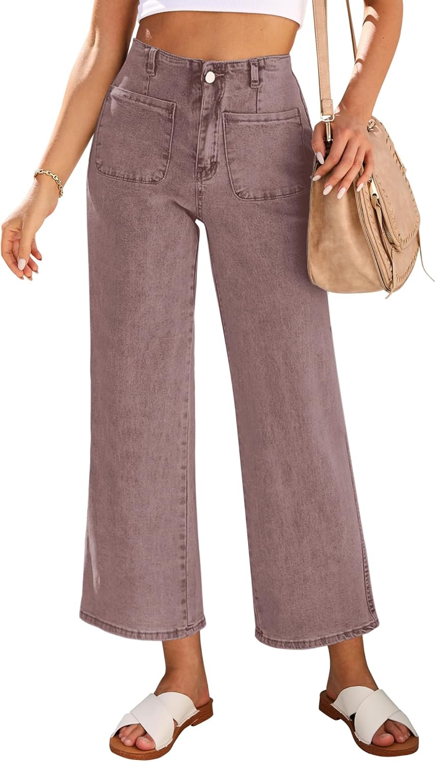 LookbookStore Womens Jeans High Waisted Trendy Cropped Wide Leg Baggy Stretchy Denim Jean Pants Pocket Trousers Jeans