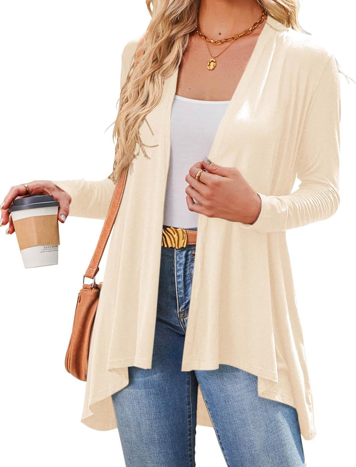 Bluetime Women's Open Front Cardigan Sweaters Lightweight Long Sleeve Drape Knit Cardigans with Pockets (S-3XL)