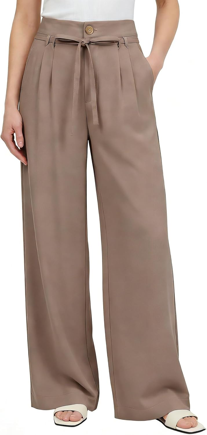 GRACE KARIN Linen Pants Women,Elastic High Waist Wide Leg Pants with Pockets,Comfy Beach Vacation Trousers