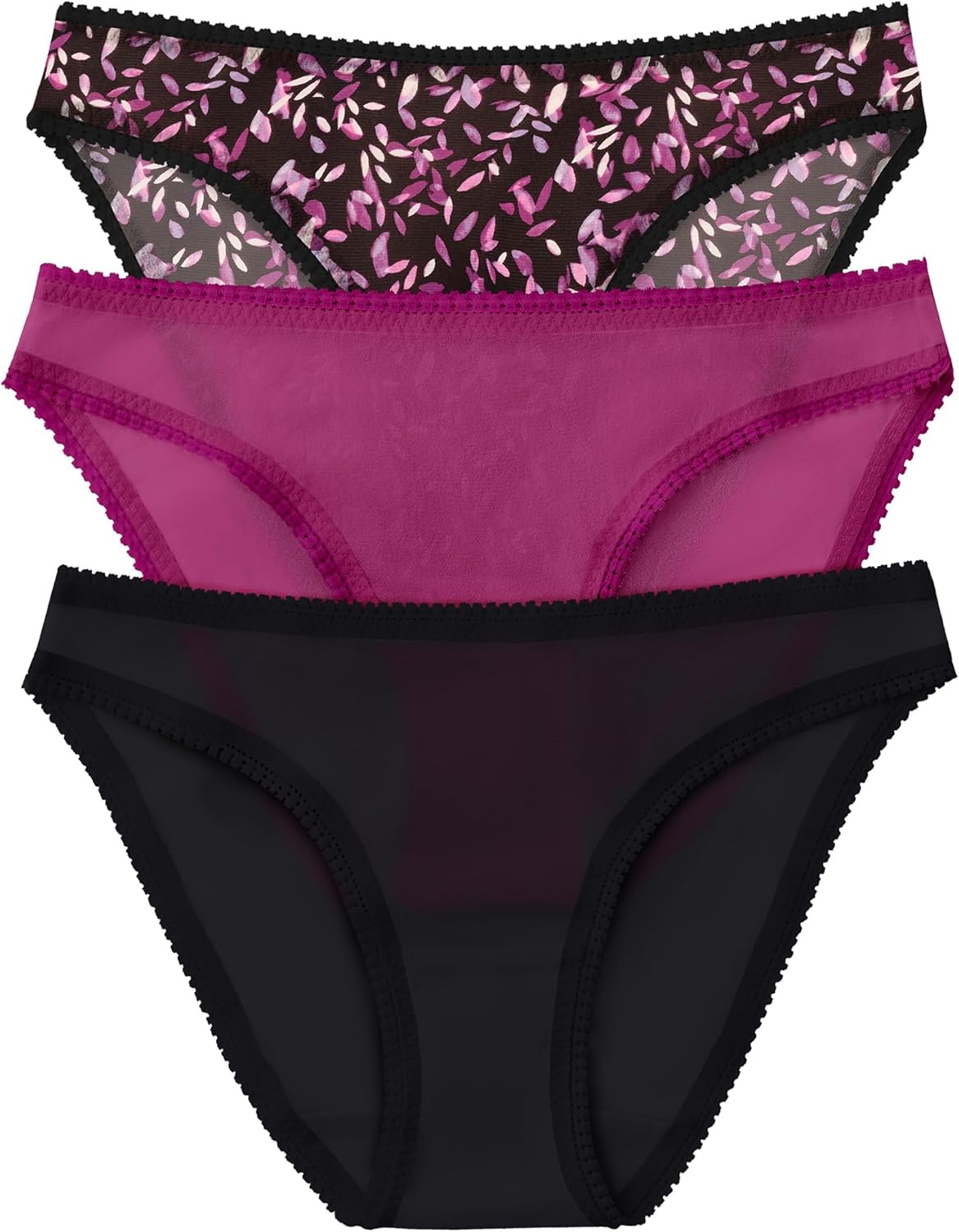 OnGossamer Women's Intimate Apparel Mesh Low-Rise Bikini Panty, Black/Purple/Floral Print, Large
