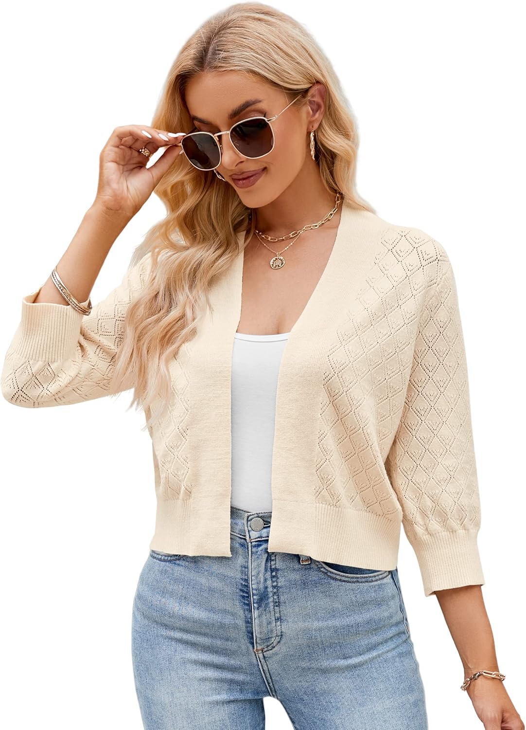 Shermia Women's 3/4 Sleeve Cropped Cardigan Sweater Open Front Short Shrugs Cardigans Lightweight Sweaters
