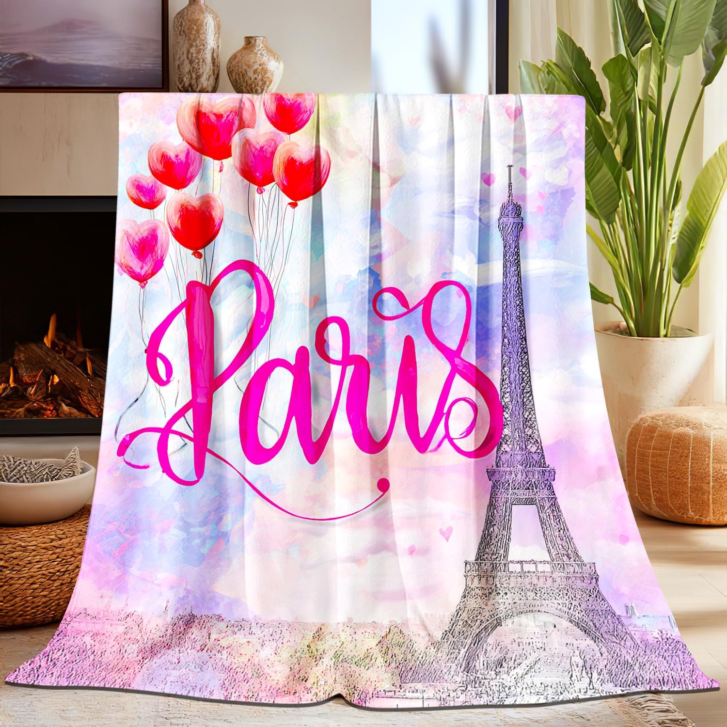 Eiffel Tower Blanket for Women Kids Girls, Super Soft Funny Romantic Paris Eiffel Tower Decor Pink Blanket Gifts for Valentine's Day Christmas, Warm Cozy Fuzzy Plush Fleece Flannel Blankets 50"X40"