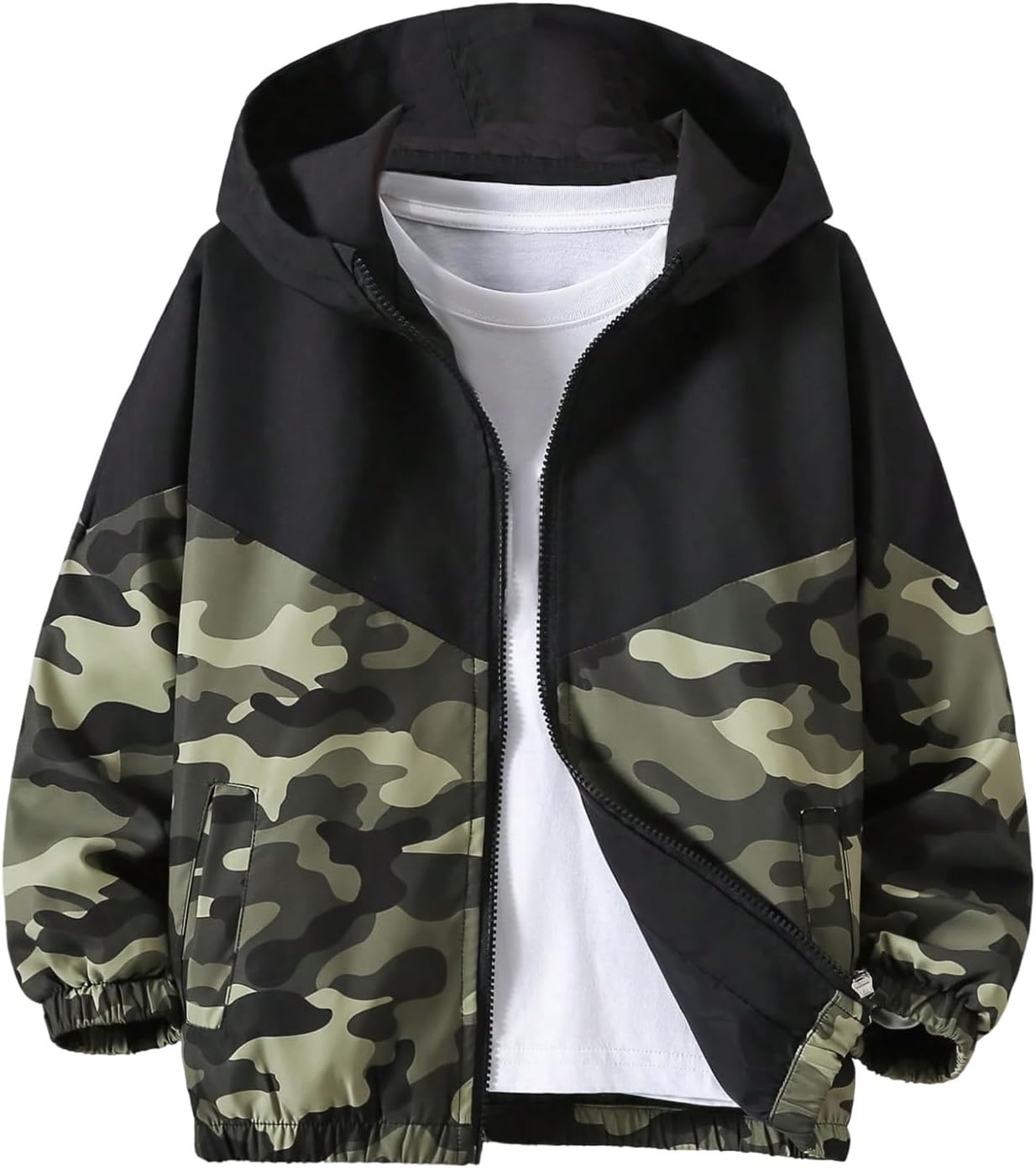 MakeMeChic Boy's Camo Print Zip Up Jacket Long Sleeve Hooded Streetwear Y2K Coat