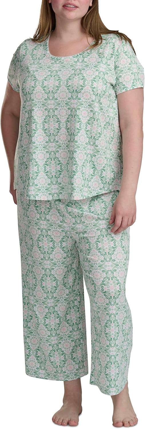 Karen Neuburger womens Kn Cool Scoop Neck Tee and Crop Pant Pajama Set With Picot Trim